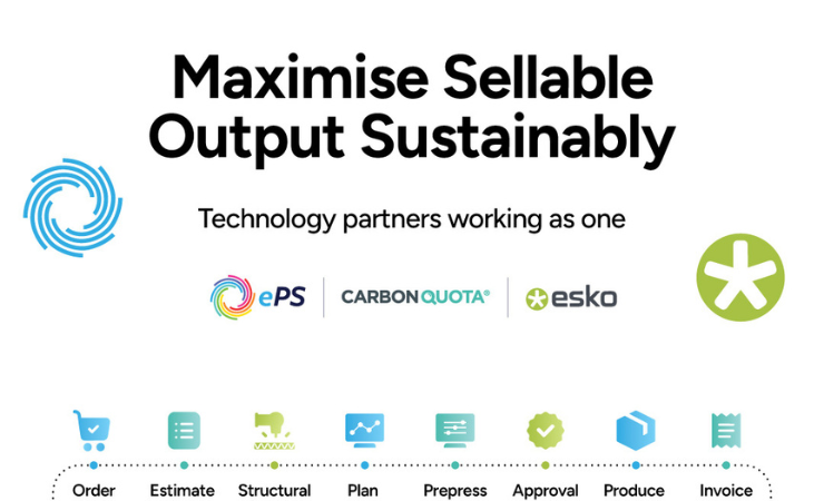 The companies said the collaboration brings together Esko’s Automation Engine and S2 platform with ePS’ ERP systems and CarbonQuota’s carbon calculation technology. The integrated solution creates a single job record that spans the full lifecycle of a packaging project, from design through to delivery.