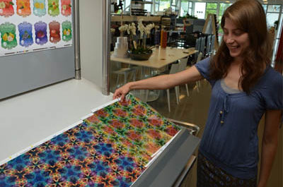 Marjolein Linders, showing her printed art for MPS Following MPS’s move to new headquarters in Arnhem, The Netherlands, the company commissioned a local art…